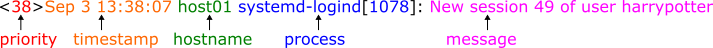 <38>Sep 3 13:38:07 host01 systemd-logind[1078]: New session 49 of user harrypotter
